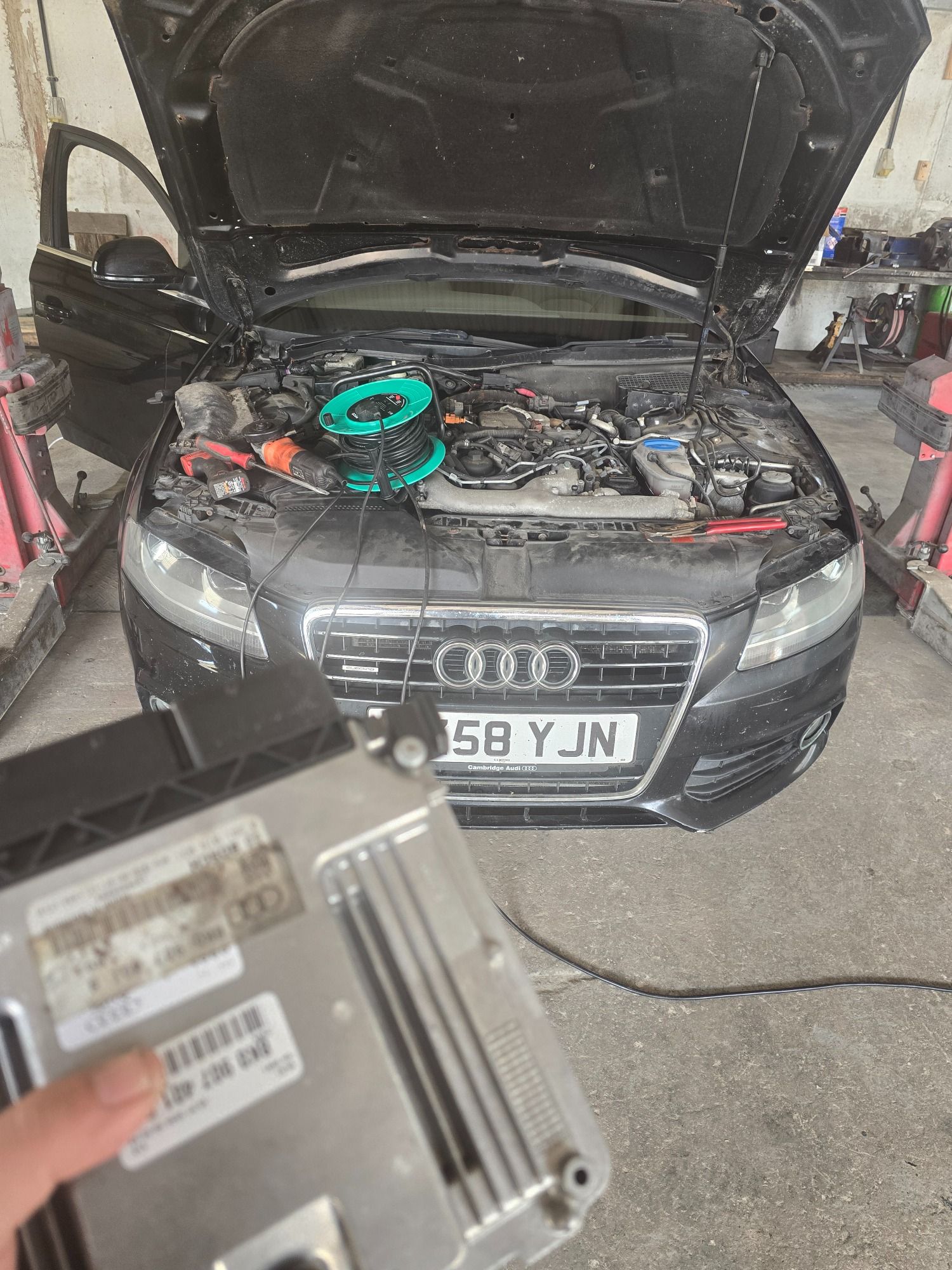 During the reading and writing process, the tools have unlocked the ECUs through a back door communicating with the main memory of the unit... all of sudden theres a power cut turning off our battery stabiliser unit. This causes the ECU power to drop below 12v and ECU has shut down... No Comms, car wont start up, faults on dash at this point. 90% of mobile tuners CANNOT recover these ecus due to lack of tools or knowledge